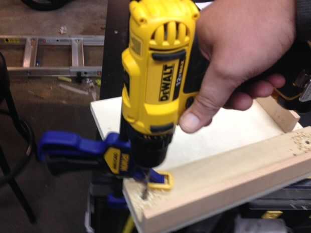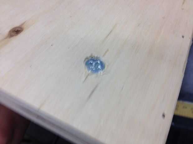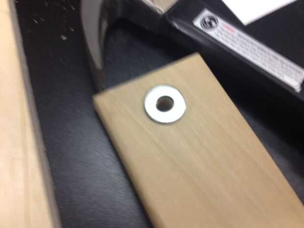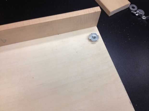 En el tablero superior Coloque pegamento alrededor de los orificios del extremo y coloque una arandela que se utilizará para la sujeción de estos.