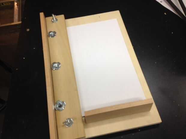 Deslice el papel entre el el tablero del agujero y la base y apriételos.