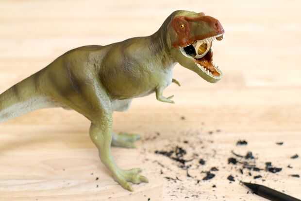 Su sacapuntas prehistórico está dispuesto a mantener su escritorio a salvo de intrusos y afilar sus lápices.
