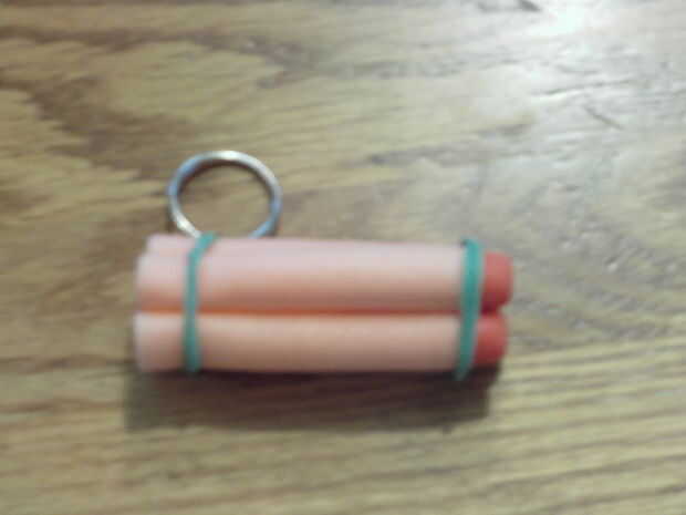 Haz 10-12 optimizada dardos y una banda de goma Envuelva bien la banda de goma alrededor de los dardos.Paso 1: la primera foto es de la Granada en modo no activo la segunda foto es la Granada activa, para que sea activa que sólo la goma hasta el comi