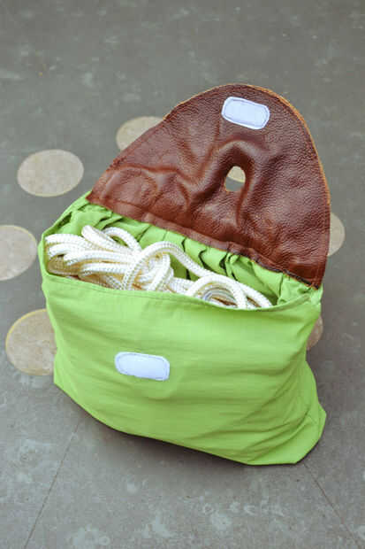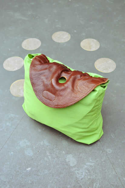 Cortar 2 piezas (usted puede elegir la forma) y coser la primera parte de la bolsa y al otro lado del velcro para el cuero. Ahora puede cerrar el bolso!