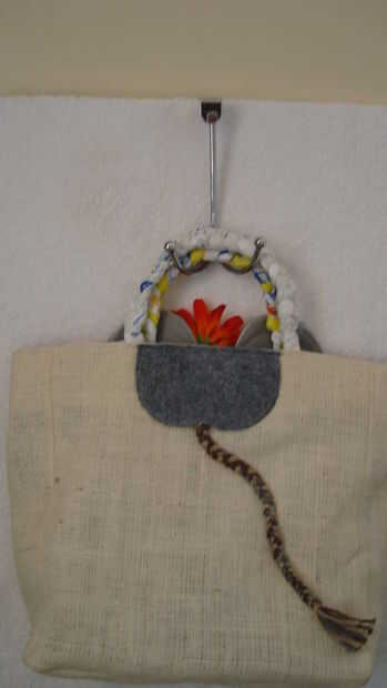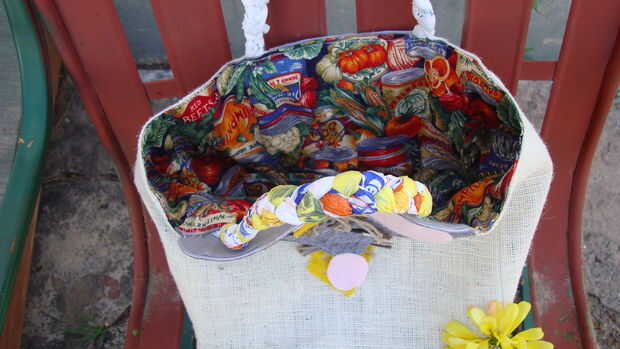 Aquí es un divertido bolso de nion (). Está hecha de bolsas de plástico cebolla de buena calidad y ha sido forrado con tela impresa y sólida. Las manijas son de tela estampada forrada con bolsas de moda. Este exquisito bolso tiene muchos usos. Llene