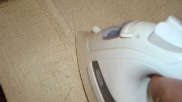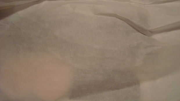 Lugar una sola pieza de papel de pergamino en su superficie de planchado. Siguiente colocar tus piezas fijados en la parte superior de la misma. Retire los pasadores y cubrir con la 2ª pieza de pergamino papel. Ahora hierro según instrucciones, asegurándose de que la entretela se pega bien a la tela. Nota: tarda más para plancha entretela a arpillera porque es un tejido abierto.
