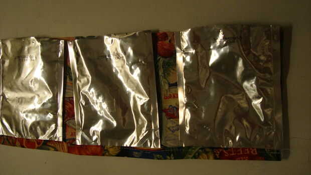 post Original en Mommyknows.comHacen de este super lindo volver al saco del almuerzo de escuela con paquetes de bebida recicladas.Necesitarás:Máquina de coserHilo de rosca15 limpia, secar los paquetes de bebidaCintaRegla (o cinta métrica)Pegar en suj