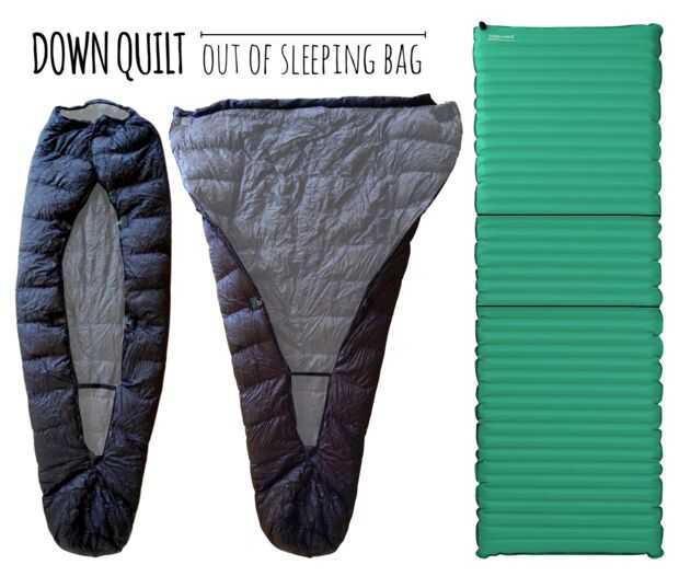 Básicamente una colcha abajo es un saco de dormir que falta la sección de piso y la campana. El diseño más utilizado tiene una caja de pie, se abre en el lado que enfrenta a la colchoneta y tiene una cadena de empate en la parte superior acurrucarse alrededor de su cuello. Con el surgimiento de la comunidad de senderismo ultraligero recibieron un impulso en fama. Las plumas hacia abajo sólo aislar tu calor cuando no están comprimidos. Sin embargo, la parte de su bolsa de dormir que está por debajo de usted es comprimido y por lo tanto absolutamente inútil. Todo el aislamiento proporcionado por este lado viene de la colchoneta. Así que por qué no lo zanja.