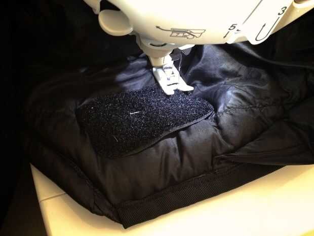 Desde más nuevo tenía un tejido antes y no sabe lo que quiero, yo quería que mi edredón para ser modular. Cosí 4 parches de velcro (lado furry) para el saco de dormir. Si no quiero los accesorios simplemente puedo rasgar apagado. Asegúrese de que colocar los puntos de enganche un poco de la costura. Piense en cómo se acostará en la estera (contigo dentro) cuando está conectado a la cuerda elástica. Si está demasiado cerca de las costuras, usted tendrá un espacio. Si está apagado un poco, la tela sobrante cerrará esta brecha.