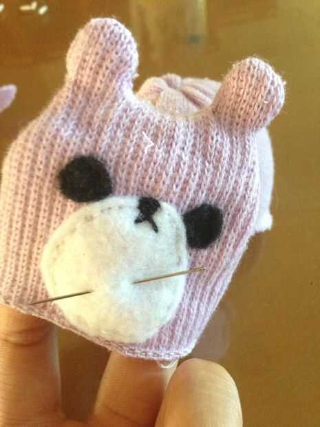 Aquí viene la licencia creativa! Utilizando los desechos de los materiales que te dije que se reúnen antes, juntar un poco cara de hamster y coser en. Que se vea original, ya que cada pequeño individuo es únicamente su creación. Corté círculos simples del fieltro de sobra para hacer ojos y una barriga, y cosido en una nariz y boca con un hilo negro.