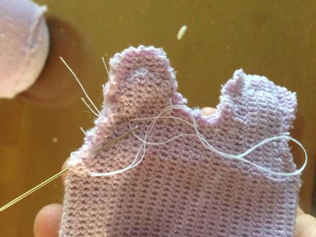 Una vez que hayas terminado de cortar el tubo en su forma deseada de hámster, vuelta adentro hacia fuera y coser los dos lados de la cabeza de orejas. Usé una simple puntada trasera que iba desde cada borde. Después de eso, tirón del lado derecho del tubo hacia fuera otra vez por lo que se oculta su costura.