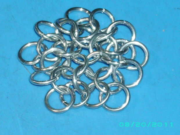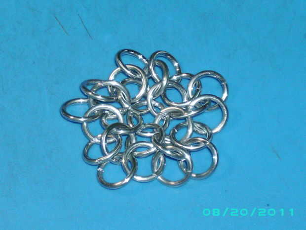 Como antes... tomar un anillo abierto y colocar a través de dos anillos de la tercera fila.