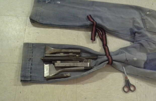 (Este tutorial asumirá que el bolso está forrado doble. Los pantalones que tengo fueron desgastados en lugares y las herramientas que desea mantener en la bolsa son pesadas).