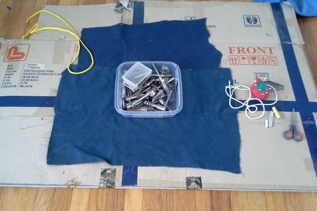 Saco terminado contiene dos capas de material. En la foto es el material que estoy usando para el interior de la bolsa. Si usted no tiene un gran suficiente pedazo de material que puede coser piezas juntos como se muestra en la imagen. Reciclé algunas piernas pantalones para hacer esta pieza de material.