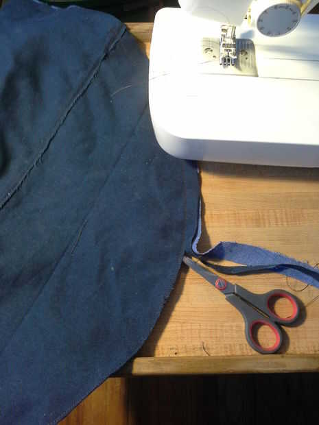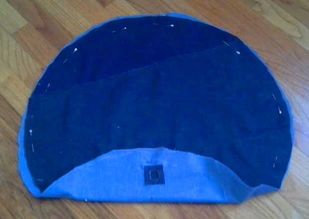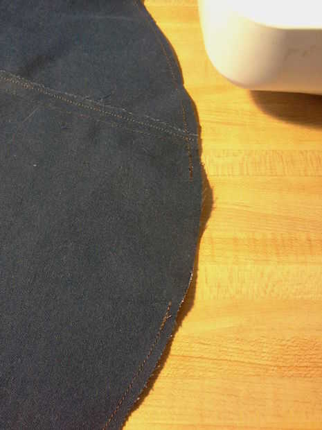 Coser a lo largo de su círculo de tiza. Si tu círculo no es perfecto no es gran cosa. El diseño es muy indulgente y el borde con volantes ocultar algún defecto. Si usted dibujó su círculo en el otro lado del material todavía puede coser el círculo. Si había cortado el material ordenadamente, a coser en desde el borde un poco.