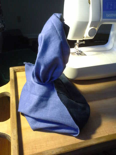 Al coser el círculo se necesita dejar una pequeña abertura invertir el material. Asegúrese de volver puntada donde la apertura es por lo que no se desintegraría al invertir el material. Esta abertura se cerrará más tarde. Puede invertir el saco a través de un agujero de la cadena de empate si el agujero es bastante grande. En ese caso no necesita dejar una abertura al coser el círculo. Había hecho esto en el saco verde.