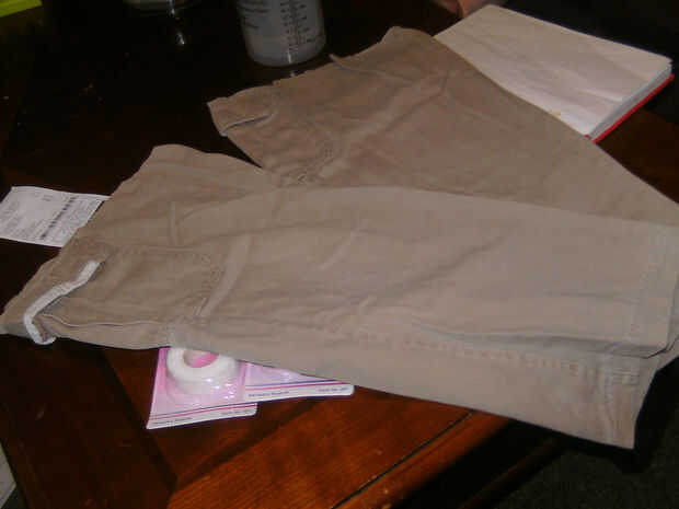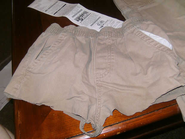 -Corte en justo debajo de la entrepierna, todo recto para eliminar ambas piernas de los pantalones.