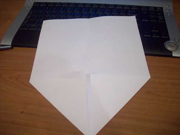 Tomar la esquina de uno de los lados del plano y abatirla hacia el pliegue central. Repita esta acción en el otro lado.