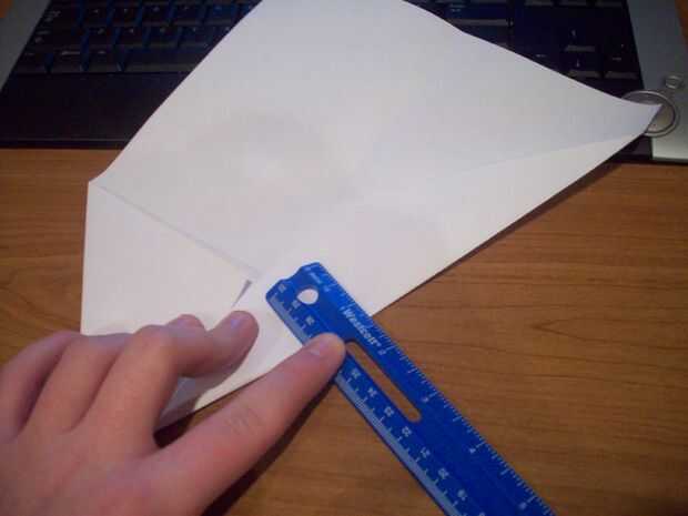 Opcionalmente puede utilizar la regla en este paso a arrugarse sus pliegues por lo que son mucho más limpio y verduras. Más pliegues producen una mayor calidad y avión simétrico.