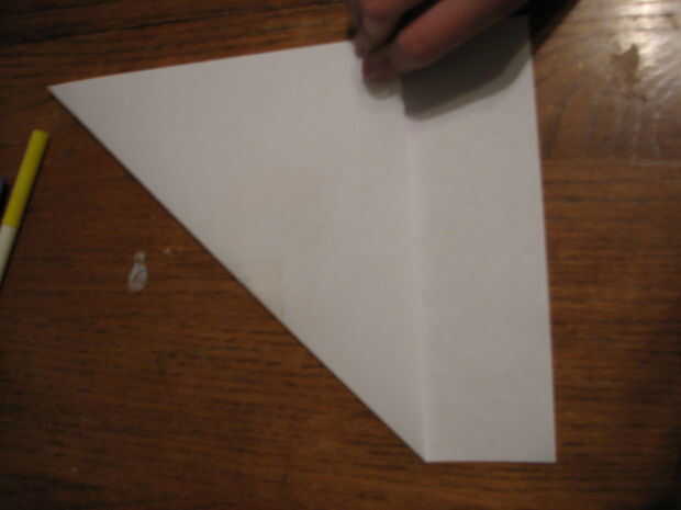 1. doble la parte superior para que se toque el otro lado y forma un triángulo rectángulo, y luego revelar.