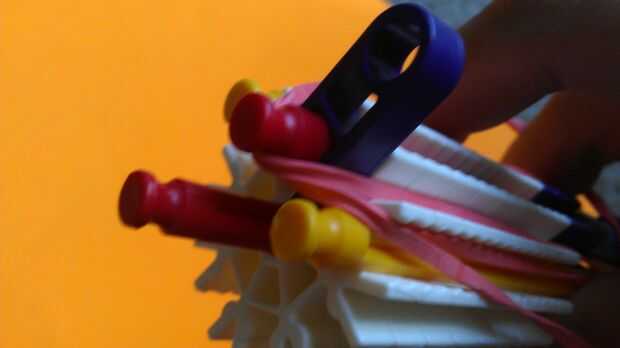 Inserte el émbolo a través del orificio en la parte posterior. A continuación, agregue una banda de caucho.