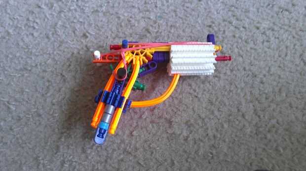 •2 medio nerf pistolas•una pistola de sacudida de nerf•y balas además de un clip de boddle aguaPaso 1: Agarrar 1 pistola de NerfPaso 2: Agarra otroPaso 3: Agarrar la pistolaPaso 4: Clip en estePaso 5: ArmarPaso 6: Añadir balasPaso 7: Producto Final