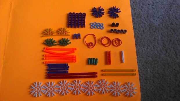 Necesita de 8 conectores blancos, 2 barras rojo, 2 barras amarillas, 4 Cañas azul, 4 barras verdes, 1 conector naranja, 1 barra blanca, 5 barras flexible naranja, 3 gomas, 2 conectores verdes, 2 amarillo, 2 tapas azul pequeño, 8 separadores azul pequeño, 5 separadores gris, 2 tapas de negro, 10 tapas púrpura grandes y 2 conectores azules. También necesita barras bendy púrpura (aún no demostradas) para la munición.