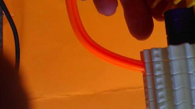 Aquí es un mod muy rápido para su pistola de nerf de sacudida. Parte de la palanca de carga a veces le pegaría a mi mano que afectan el flujo de aire y producir la menor distancia de disparo. Cortando sólo un extremo de la manija en forma de T siendo