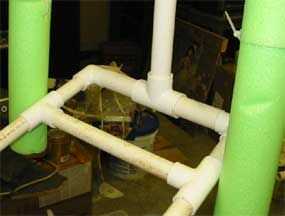 20 pies enorme arácnido con suspensión víctima envuelta en su web! Pasé aproximadamente $40 utilizando gran parte de las fuentes de alrededor de mi casa.Materiales necesarios:secciones de 8 pies de 1/2 pulgadas pvc x 10grado 45 x 1890 grados x 8X 8 d
