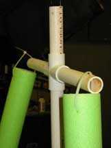 Taladre un agujero en el PVC de 1" y ejecutar una atadura a través de la PVC, luego a través del tubo de la piscina. Deja mucha holgura, este deja los brazos mueve.