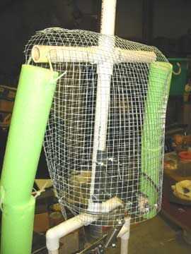 Corte un agujero de 2" en el centro de la pieza de tela del paisaje y doblar sobre el cuerpo (véase la foto). utilizar abrazaderas de plástico para sujetar el paño del paisaje a los lados y la parte inferior. Doble y ajuste el cable hasta que se asemeja a una forma del cuerpo.