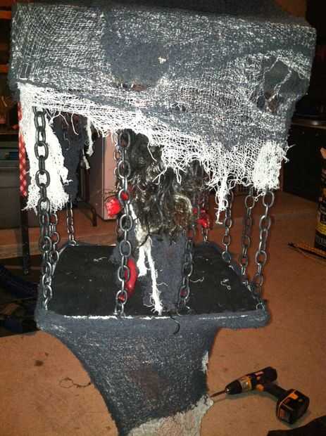 me vino la idea de una jaula de plástico con un esqueleto que podría comprar en Home Depot. Pensé parecía un poco demasiado plástico para mi gusto