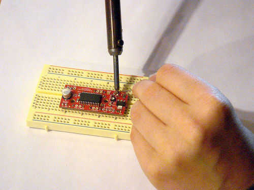 el protoboard, deslice el EasyDriver en los extremos cortos y luego calentar el