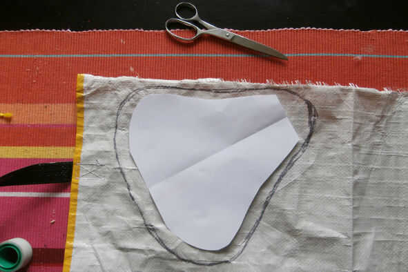 Abrir el patrón y ponerlo en el bolso doble. Elegir la sección que te gusta. Dibujar el patrón en la bolsa y cortar. Como veis he añadido algo de espacio extra para la costura.