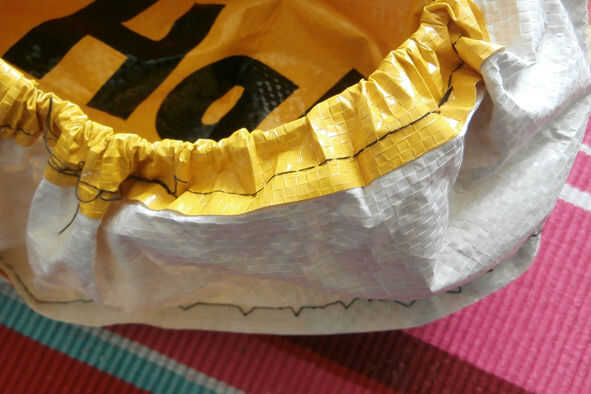 Utilizar una puntada ancha para evitar que el plástico de ripeo. 5 mm debe ser fino.