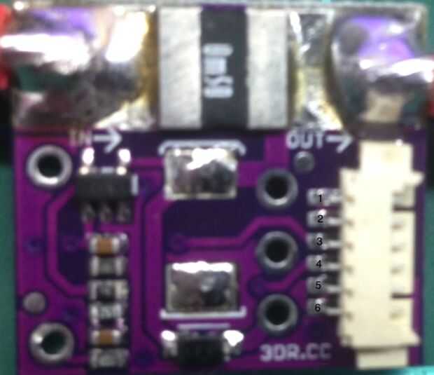 Igual que arriba, medir entre los pines 5 (tierra) y pin 3 (positiva) para ver qué tensión está saliendo, en este punto probablemente será 0v o algo muy pequeño. No tendrás ninguna indicación de la corriente hasta que usted realmente dibuja algunos cargando hasta el módulo de potencia - es decir volando el quadcopter! No cargue su 0v * factor de amp que es todavía 0.