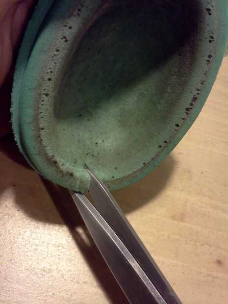 Luego marqué la carcasa de plástico donde se encuentran la espuma y cortar ranuras más para los cables.