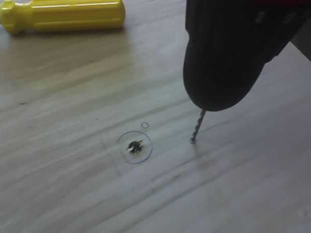 El agujero no tiene que ser muy grande, apenas lo suficientemente grande la alimentación los cables de la lámpara a través del interruptor.
