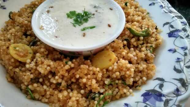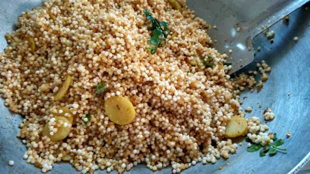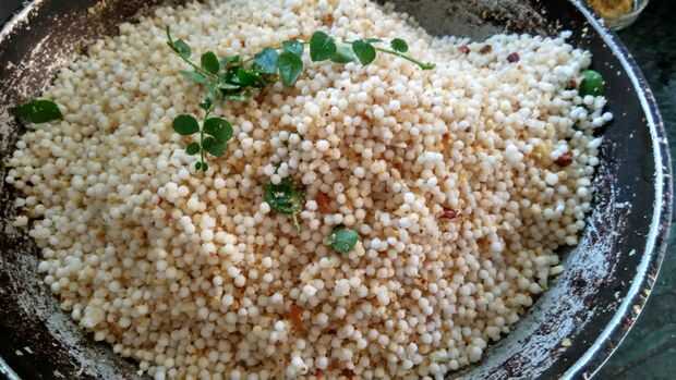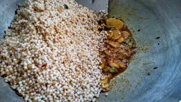 Sabudana o usted puede decir sagú se cuecen con patatas y machacado de maní, se hace generalmente durante días ayuno