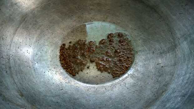 4. en un sartén seco asado cacahuetes hasta doren y cuando cáscara refrigerados por piel y luego moler grueso.