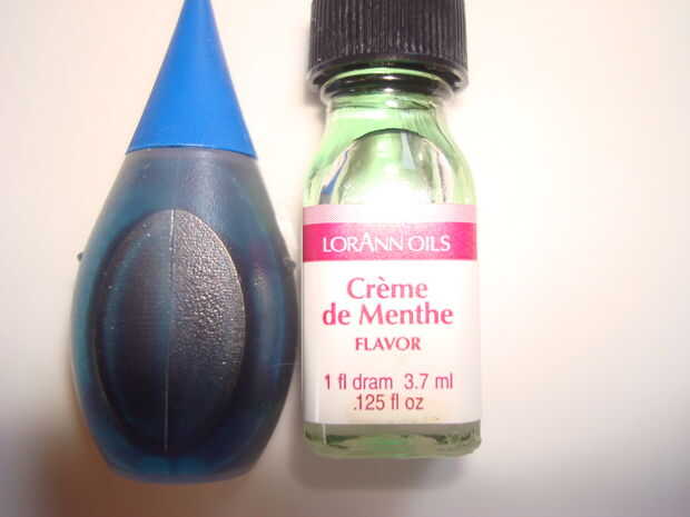Para el glaseado he añadido unas gotas de crema DE menta, Granillo perla y colorante. El sabor es muy concentrado así que encima no se.