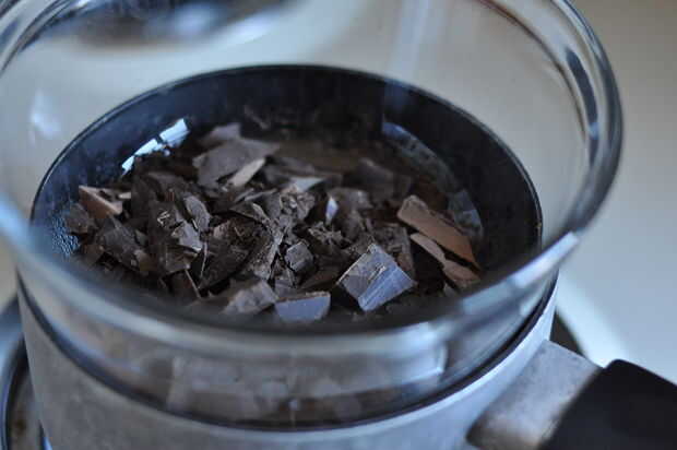 Cortar las barras de chocolate y colocarlas en la parte superior de la caldera doble o tazón de fuente de calor cuando el agua está hirviendo. Como el chocolate empieza a derretirse, revolver suavemente. Una vez que el chocolate es suave, retire del fuego.