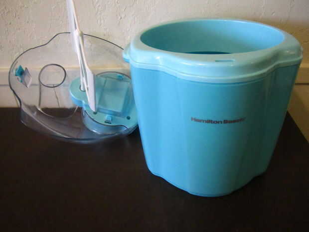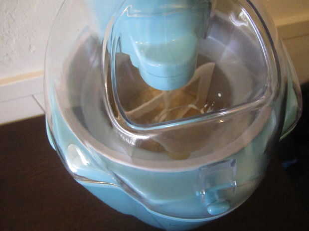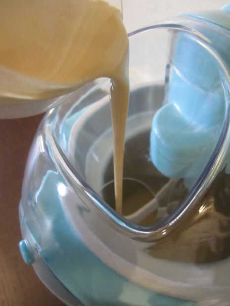 10. Configure la heladera según las instrucciones del fabricante. Retire la bolsa de zip lock desde el contenedor de almacenamiento e inmediatamente añadir la mezcla de helado en la heladora.