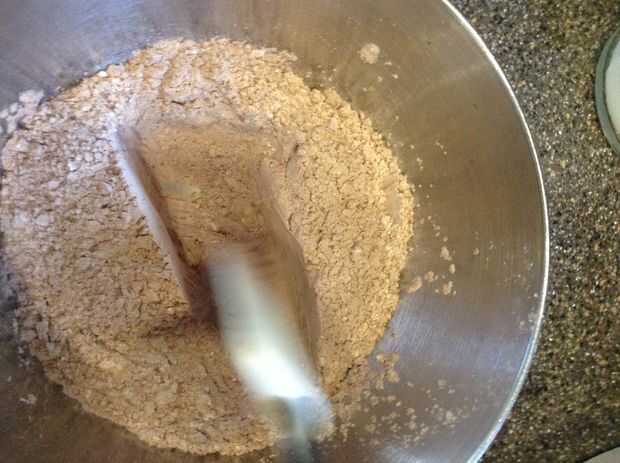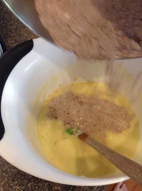 4-Añadir la mezcla de harina a los ingredientes húmedos. Mezcla hasta liso y cremoso.