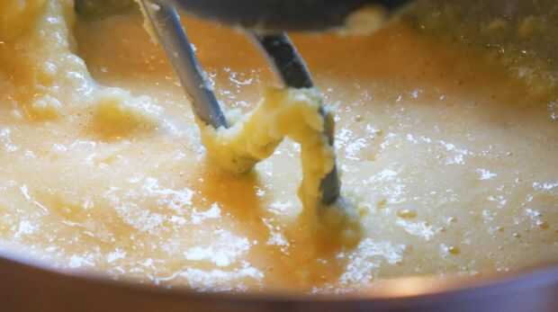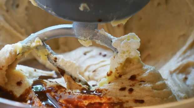 Añadir el agua caliente caliente y la leche para el café instantáneo y dejar enfriar. Bata la mantequilla y el azúcar hasta ligero y mullido. Lentamente agregar los huevos uno a la vez. Tamizar los ingredientes secos, seguido de 1/2 de la mezcla de café + la pasta de vainilla. Separar la masa de la torta en 3 y hornear a 180 grados C/356 grados F por 20-25 minutos