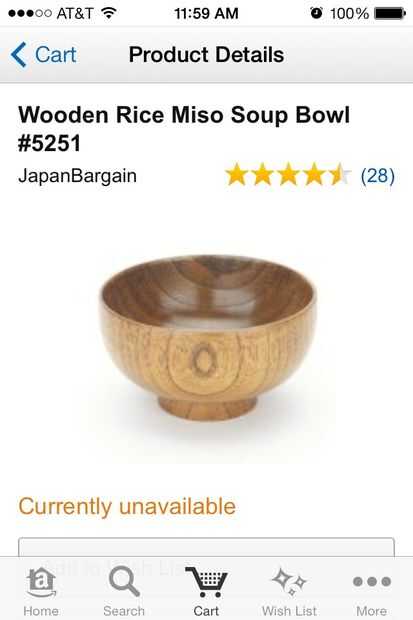 Como siempre hago, tengo mi tazón de Todopoderoso amazon. Básicamente, busqué un marrón madera del mismo tamaño y un tazón de sopa de miso encontró sobre derecho.