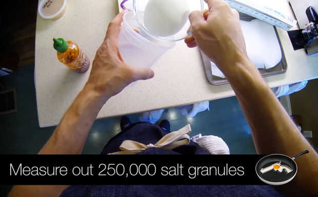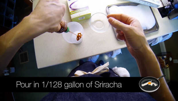 Dispara a una cantidad saludable de Sriracha en alrededor de 1/2 taza de sal.