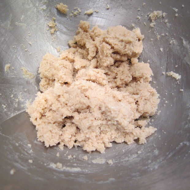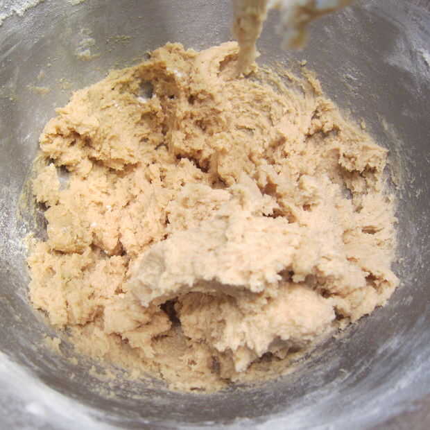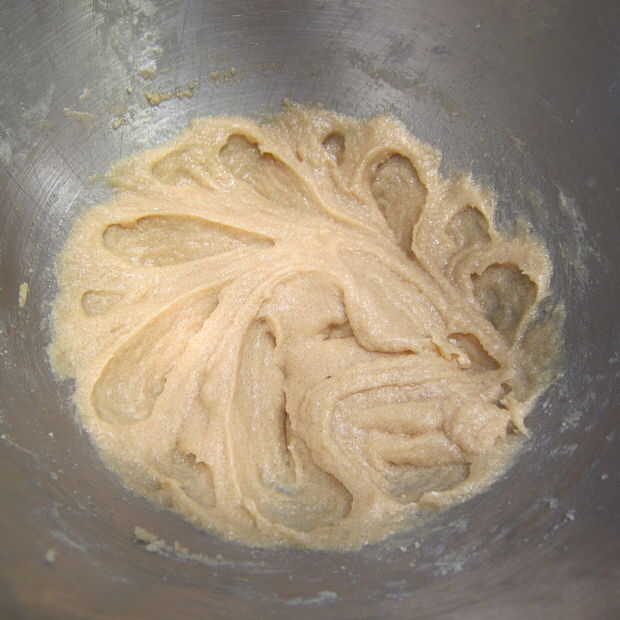 En el recipiente de una batidora provisto de paleta accesorio crema mantequilla y azúcares. Añadir la vainilla y el huevo y continuar batiendo hasta que se incorporen bien.