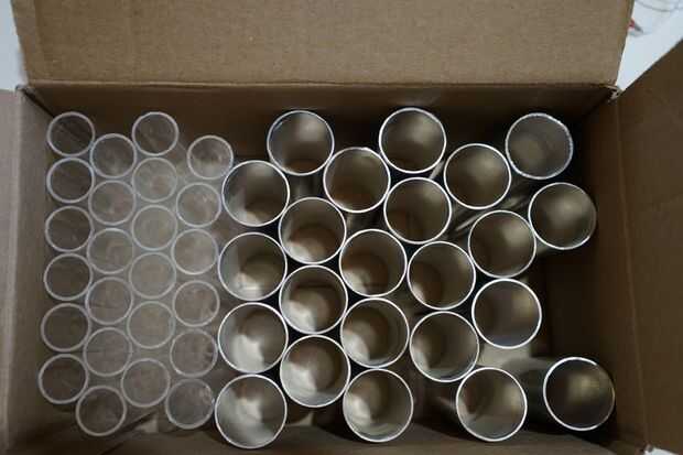 Usé una sierra para cortar ingletes con las derecha cuchillas para cortar el aluminio y plexiglás. Elegir 10 cm longitud.