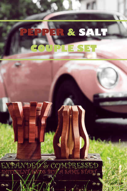 Quería crear sal y pimienta coctelera con una torcedura.La idea es que cuando usas les harían un sonido como un instrumento musical de la coctelera.Esto se logró mediante la creación de una doble pared con granos en el medio para crear el sonido.Paso
