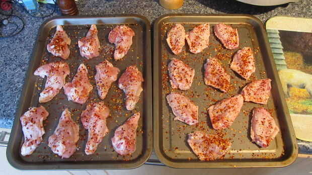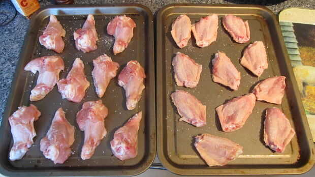 poner un toque de sal gorda en cada ala, luego agregar una pizca de copos de guindilla para cada bit, añadir tanto como le gustaría ser honesto.