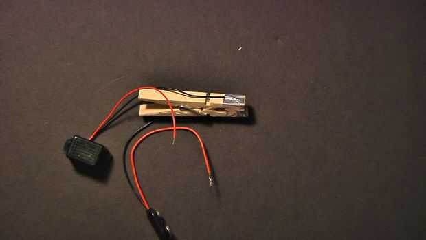 Repita el paso 3 en el lado opuesto de la boca de la pinza de la ropa, pero esta vez con el cable negro de la alarma.