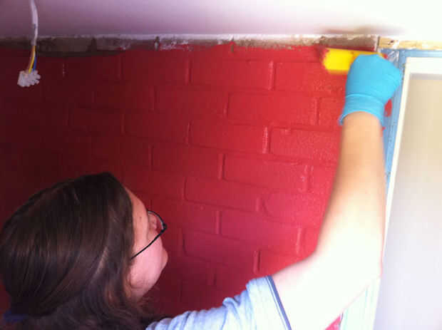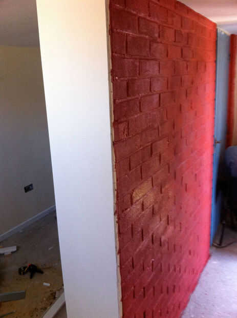 La pared de ladrillo fue dado un lick de rojo 'hot ladrillo' que es cierto que bajo la fuerte luz del sol se ve un poco rosado.